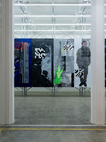 Seine Leinwände erforschen die Spannung zwischen Regulierung und Freiheit, Institution und Individualität. Diese absichtliche Abweichung innerhalb der Struktur („Broken Twill“) liefert den konzeptionellen Anhaltspunkt für die Erweiterung seiner Praxis in die Bereiche KI und Daten , die in der Berliner Ausstellung präsentiert wird